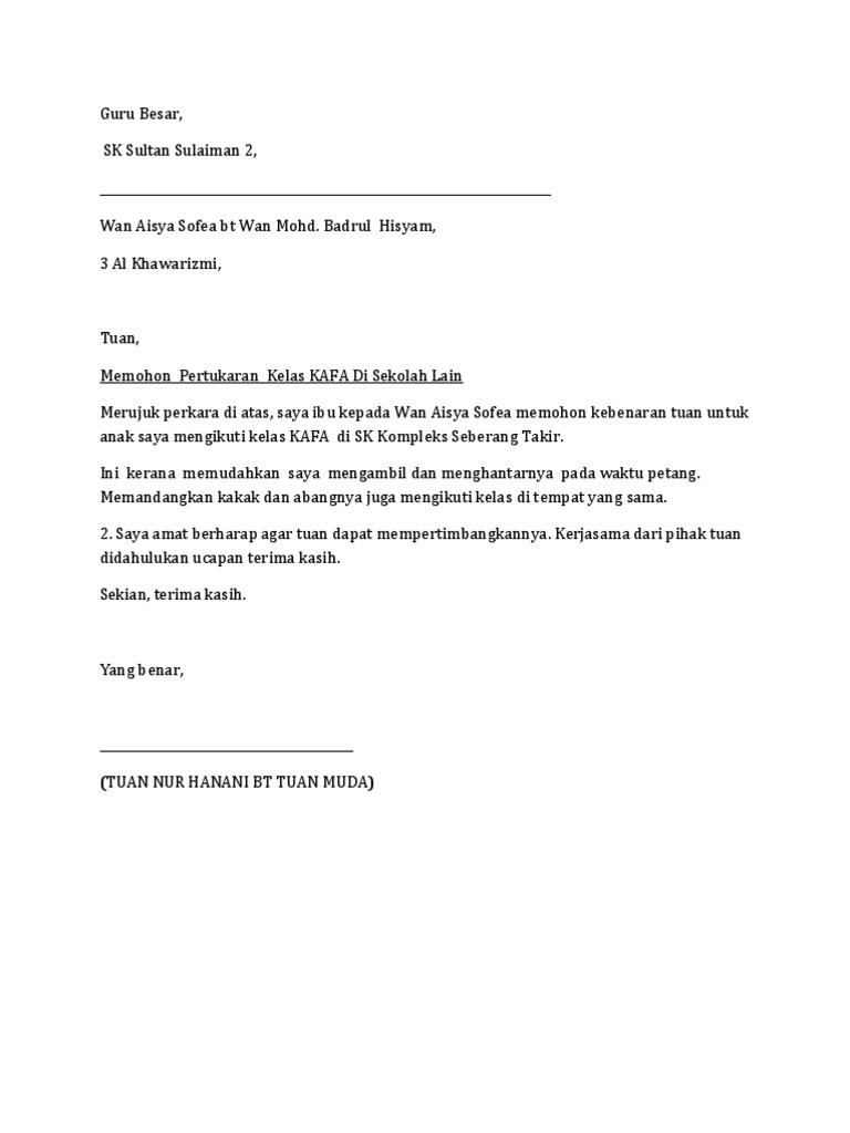 Ibu bapa perlu mengisi borang. Save Save Surat Permohonan Pertukaran Sekolah For Later. Contoh surat rayuan pertukaran sekolah murid smu contoh surat rayuan pertukaran sekolah murid meaning contoh surat rayuan pertukaran sekolah darjah 1 contoh surat rayuan pertukaran sekolah murid contoh surat rayuan haji contoh surat rayuan pengurangan bayaran contoh surat rayuan matrikulasi contoh surat rayuan kemasukan sekolah contoh surat rayuan pindah.